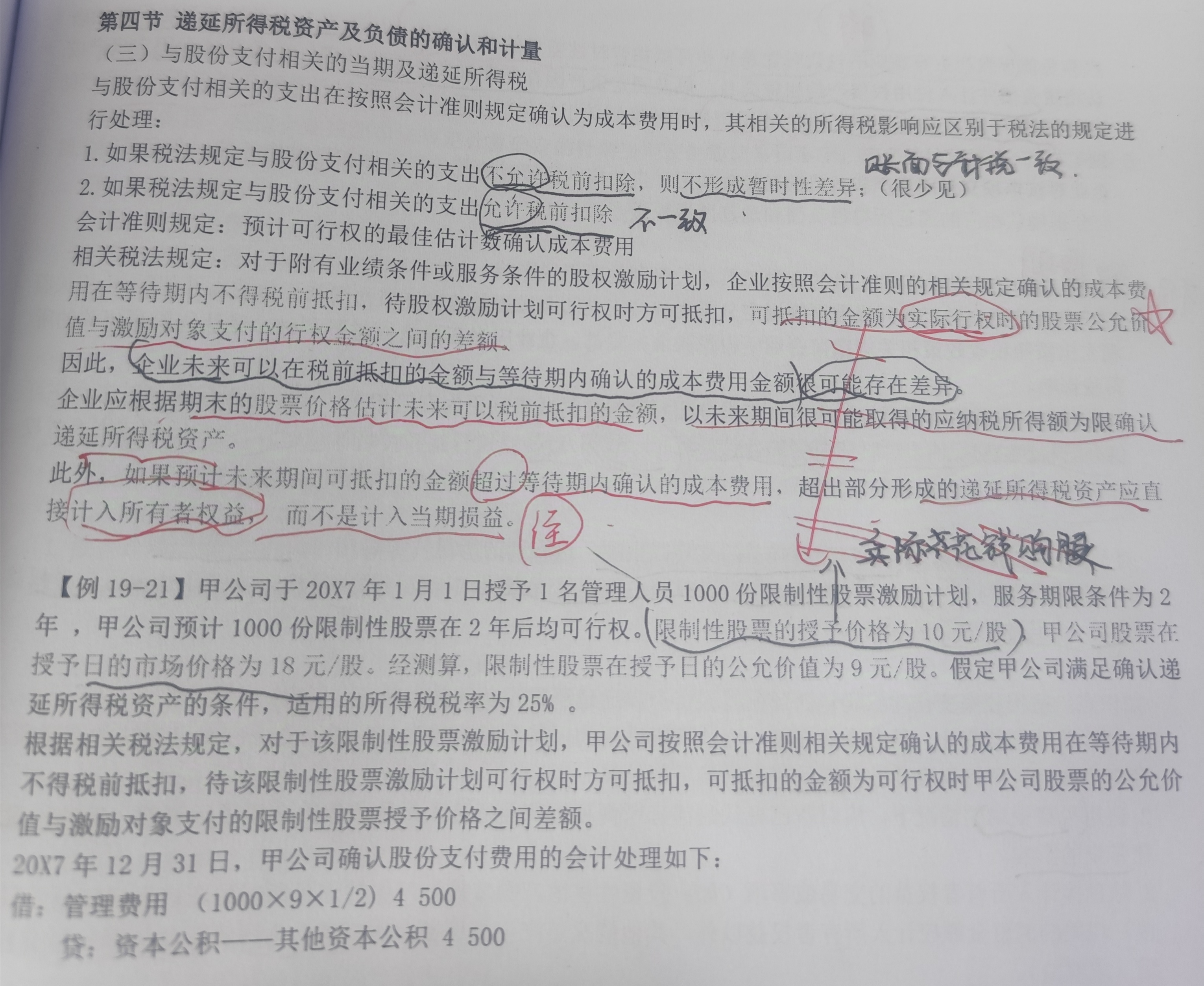 问一下关于与股份支付相关的递延所得税。如图,激励对象支付的行权金额和等待期内确认的成本费用金额是一个意思吗,我所理解的如例题,激励对象支付的行权金额是例题中的授予价格10元,而等待期的成本费用是以授予日的公允价值为基础9元,很显然两个不是同一种。那为什么会说,是可抵扣金额是实际行权时股票公允价值和激励对象支付的金额。