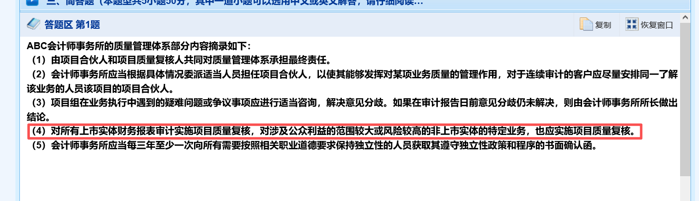 第4小问只说“对涉及公众利益的范围较大或风险较高的非上市实体的特定业务”,但如果审计证据扎实、审计程序有力,即便是风险较高的也不能说是“应”吧?