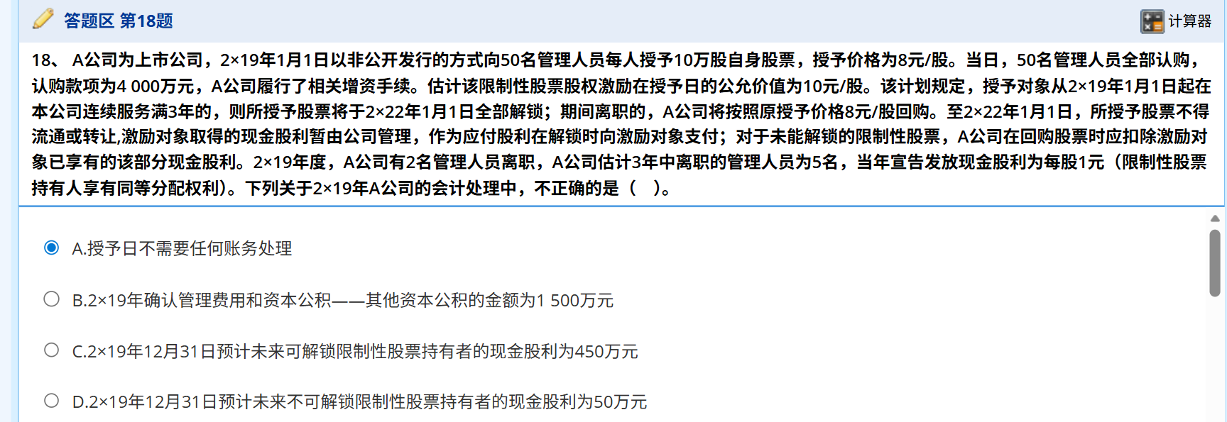 A选项肯定不对,收钱了然后进行增资处理肯定要有会计处理,但是我看解析不明白为什么股本是500万,不应该时50*10万*10元等于5000万吗,但是这样感觉又不对了