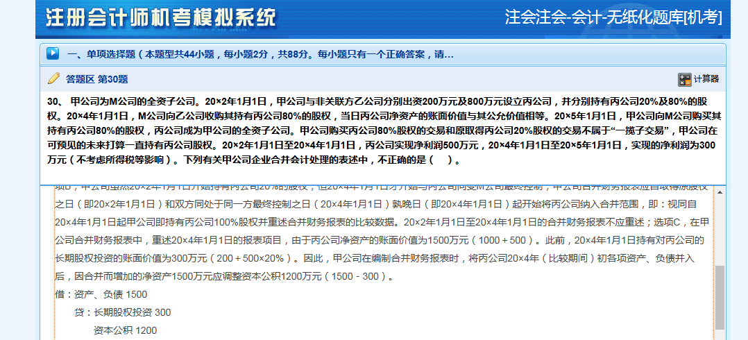 我想问一下这一题为什么最下面这边,冲减甲公司持有的公司的长投是300,甲公司后续取得80%的丙公司股权后长投不是应该调增至1500吗,然后长投与丙公司的所有者权益直接全部抵消掉,为什么会产生差额计入资本公积