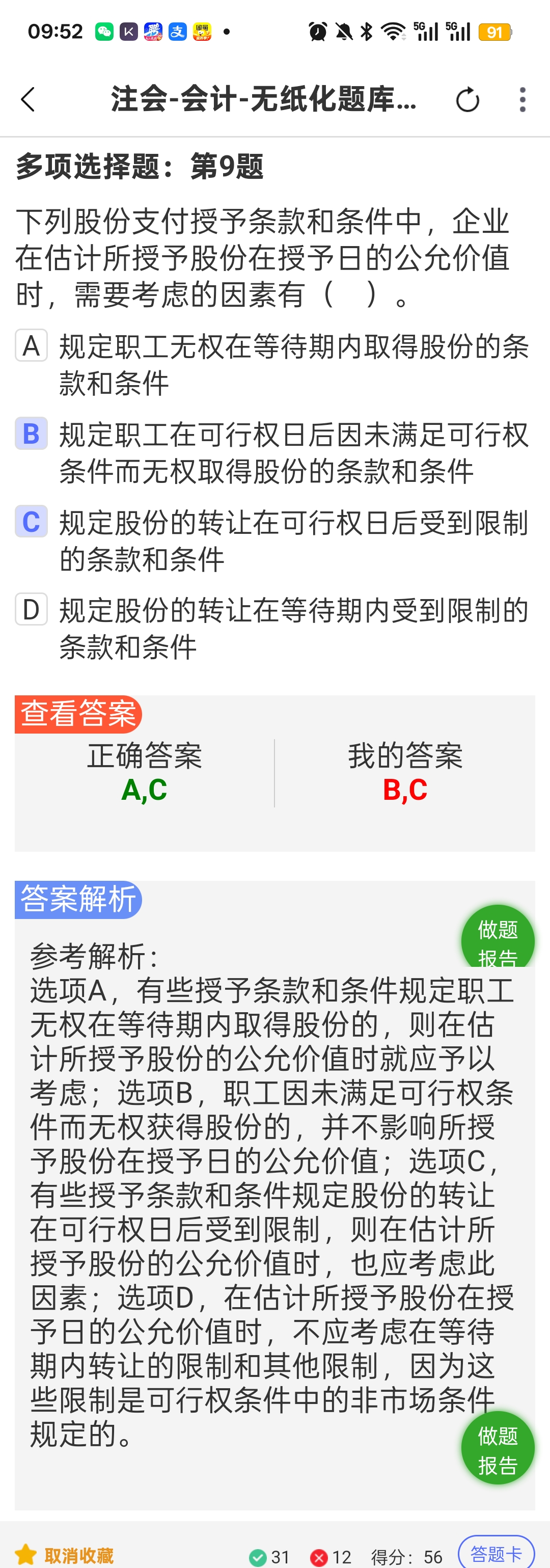 第十章会计 这道题我完全不知道在考什么,也看不懂解析 我知道的是市场条件和非可行权条件,影响公允价值,但是不知道这道题再考什么?对应讲义什么内容