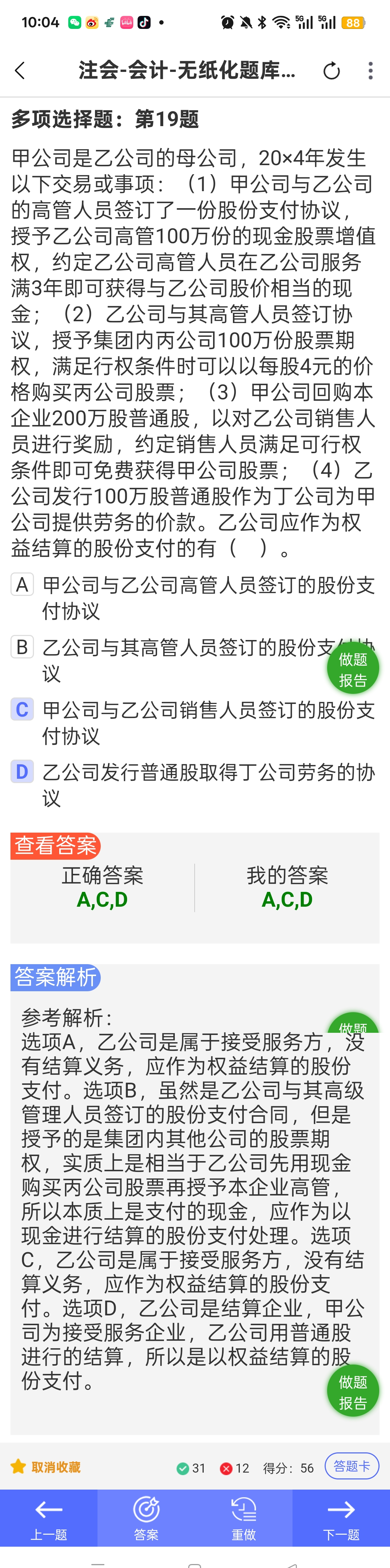 第十章会计 不是都给现金了吗?怎么会是权益支付呢? 而且怎么知道有没有结算义务呢?