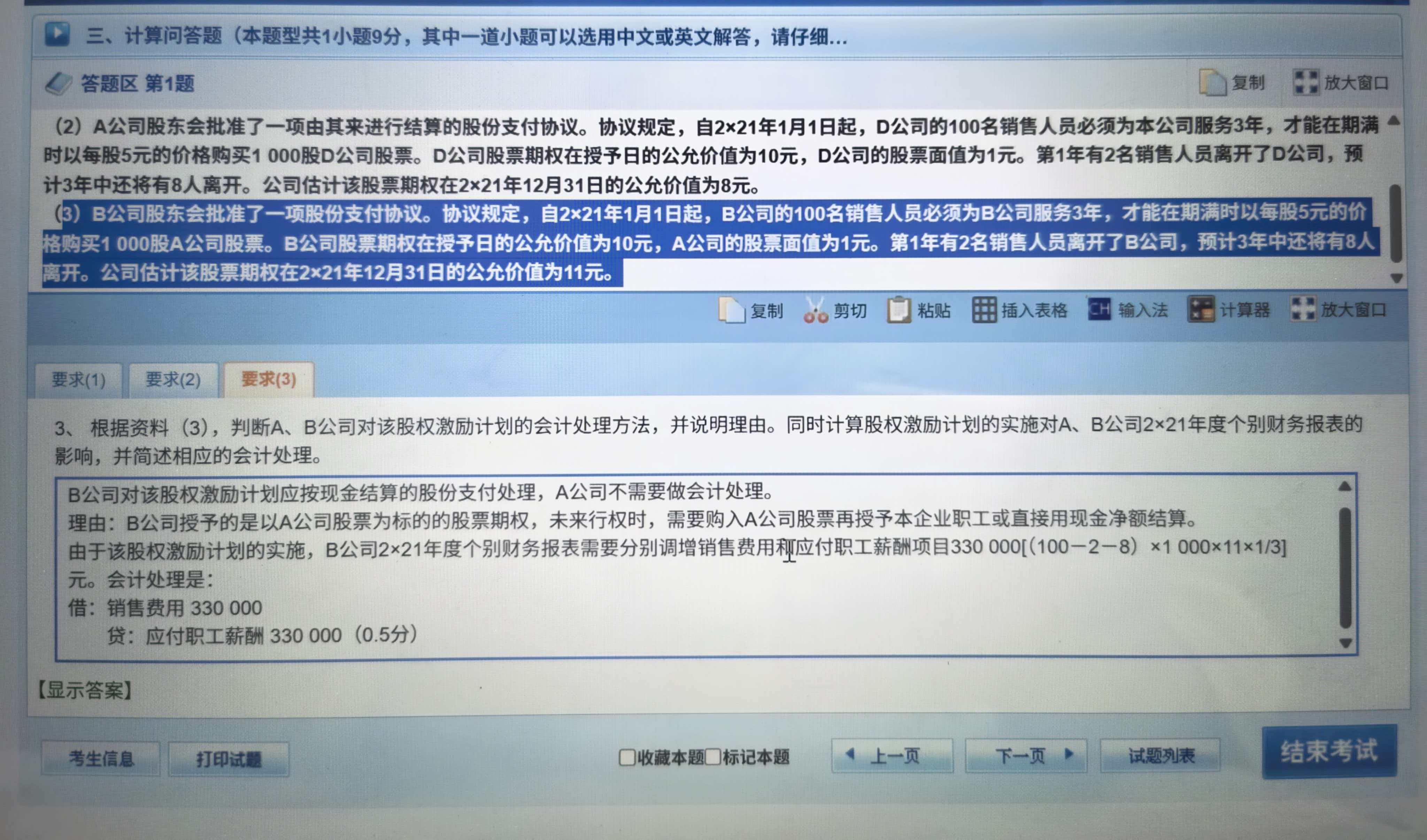 老师请问标蓝底的第三问中,为什么A公司不需要做会计处理,不是应做权益结算的股份支付处理吗?