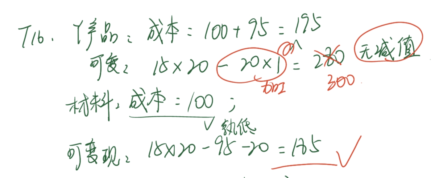 孙老师 我想问问这个T16原材料其所产出产品未减值的情况下原材料的价值应该为较低的成本价吗?为什么最后选择185呢?
